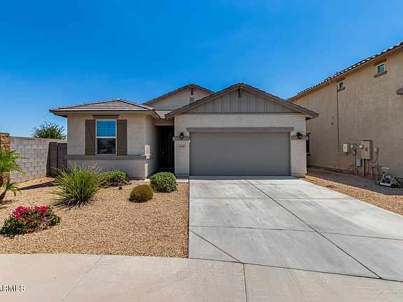 This beautifully upgraded 3-bedroom, 2.5-bath home is located in a highly sought-after gated community and features a versatile office that could easily convert into a 4th bedroom. The popular great room floor plan showcases neutral paint tones, tile flooring in main areas, and plush carpeting in all bedrooms and the den. The gourmet kitchen is equipped with smoke-stained cabinets, granite countertops, a large island with breakfast bar, and ample storage—perfect for entertaining. The spacious primary suite offers a walk-in shower, executive-height cultured marble vanities, and a walk-in closet. Additional highlights include double doors at the den, 2'' faux wood blinds, a beautifully landscaped backyard with an automatic watering system, and a covered patio with space to create your own outdoor retreat. Conveniently located near parks, shopping, dining, and Spring Training baseball facilities, this home combines an unbeatable location with a wealth of desirable features. A must-see with too many highlights to list!