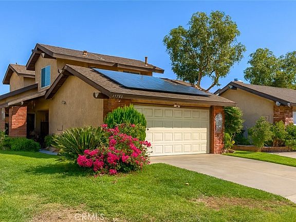 Beautiful Vanguard community home- Perfect for First-Time Buyers or Growing Family. 4 bedrooms and 2.5 bathrooms ( title shows as 3 bedrooms but it actually has 4) making a perfect fit for growing families or those needing extra space. This charming home offers comfort, style, and functionality. The first floor features tile flooring throughout and an open living space, a bedroom and a half bathroom conveniently downstairs. Upstairs will greet you with the other 3 bedrooms and 2 bathrooms. The kitchen is a very charming kitchen with granite countertops updated stainless steel appliances next to the dinning area that opens up to the permitted patio!! It comes with solar panels to save energy ! Not to mention !! Just minutes away from the 15, 10, and 210 freeways, and conveniently located near schools, shops, plazas, transportation, and of course Victoria Gardens!!!! This home combines functionality with charm and is move-in ready for its next owner.