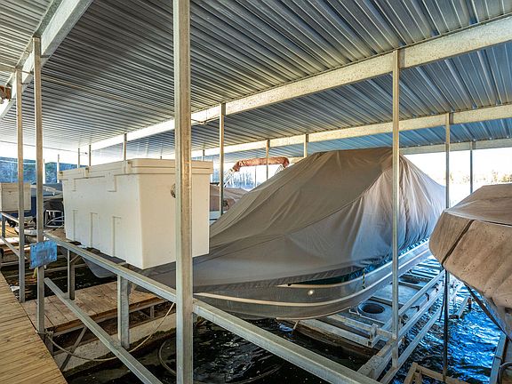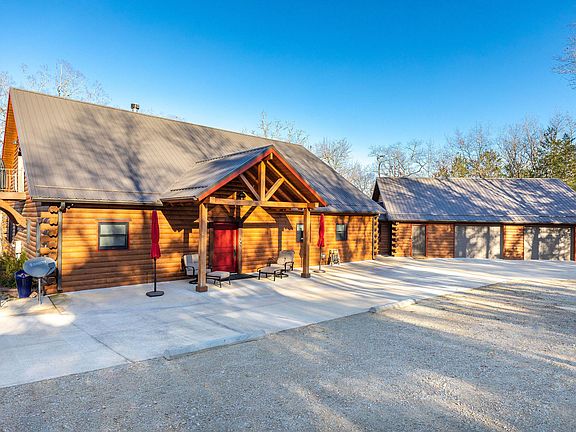LAKE FRONT! PRIVACY! GOLF CART TO BOAT SLIP! This is the lakefront cabin in the woods that everyone dreams of! The high-end custom log home boasts 3 bedrooms (plus oversized bunk room), 3 baths, and a fabulous chef's kitchen. The one-of-a-kind loft bunkroom sleeps 10! Imagine the family memories to be made here! Meticulously designed and perfectly maintained, the home features an attached oversized garage, expansive outdoor living with terraces and decks overlooking the lake and a charming firepit. Loaded with amenities, including a private well with three-stage filtration, heated floors, a tornado shelter, and a Generac generator, this property offers low-maintenance luxury. A detached shop with RV parking adds versatility. Take a short golf cart ride through this attractive neighborhood to the available boat slip. Stroll directly down the path below the house to put your toes in the water! This home is nestled in a secluded location in a quiet cove, yet just a short drive to Branson, Eureka Springs, Dogwood Canyon, or Big Cedar Lodge. This is it!