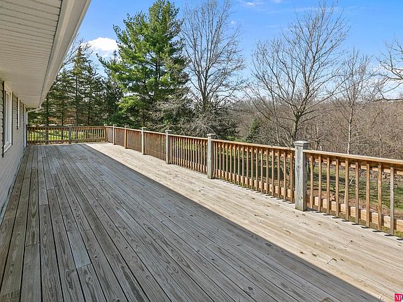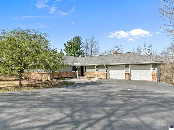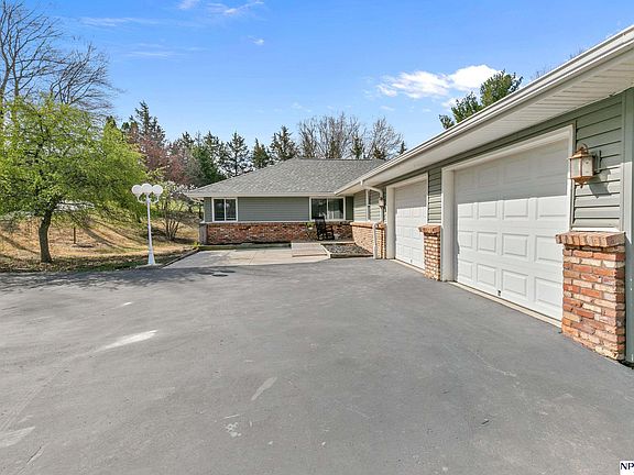 This beautiful home on 5 acres of wooded land is located only minutes from Omaha, Lake Cunningham, and I-680. To begin, the house is a large walkout ranch featuring two enormous decks (one upper and one lower), ideal for relaxing or entertaining. The upper level is very spacious with a large great room featuring custom stone fireplace, large kitchen with newer appliances. First floor laundry is an added bonus. The lower has two flex rooms and a 3/4 bath. In addition to a large finished basement this home offers a kitchenette and tons of storage. The lower level gives access to an attached workshop with garage door. The home features many newer updates: New roof 2023, new HVAC 2022, new driveway 2023, freshly painted, and new carpeting, and many more updates. The outbuilding which features three car garage, possible office space on the second floor, roughed in for bathroom with own septic tank. The second structure is ideal for a workshop or recreational vehicles.