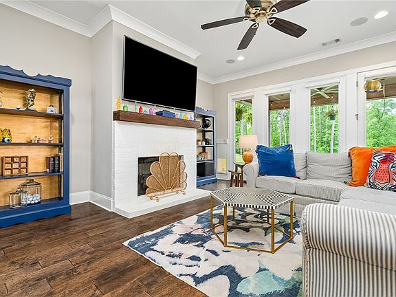 This 5-bedroom 3.5 bath home in Auburn University Club is situated on a large, serene lot that backs up to Sougahatchee Creek. TONS of PRIVACY in the backyard with PLENTY of room to roam! The main level features a beautiful living room w/ gas fireplace. Over-sized eat-in kitchen w/ ample counter & cabinet space. Center island for added seating. Separate full bar area w/ mini-fridge. SPACIOUS dining room perfect for entertaining. All hardwood flooring throughout main living area. Primary suite on the main level opens to LARGE primary bath w/ double vanities, TONS of natural light, over-sized, custom shower/soaking tub area & TWO walk-in closets. Main level also features 2 additional bedrooms w/ full bathroom including double vanities. A powder room on main level is perfect for guest. Upstairs features 2 additional bedrooms & one full bath. The covered back patio overlooks MASSIVE backyard leading to the Sougahatchee Creek. This home has many amazing features you will not want to miss!!