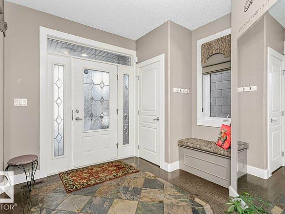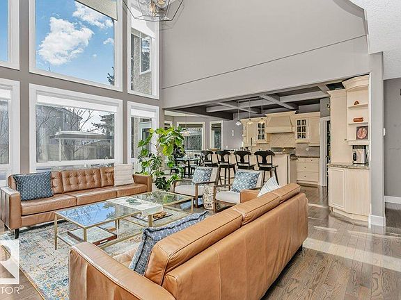 Outstanding Former Aacropolis showhome 2 storey 4198 total sq ft (incl basement)3+2 bedroom home in prestigious College Woods featuring an impressive great room design with formal dining area, soaring ceilings & natural light. Exceptional craftsmanship & quality throughout, including hardwood & ceramic tile, custom built-in wall units, & refined architectural details. The gourmet kitchen is equipped with glass-accent cabinetry, pot drawers, granite countertops, premium SS appliances, with a walk-through pantry to the laundry room & garage. The large primary suite has updated luxurious ensuite with jacuzzi tub & walk-in shower with glass-on-glass doors. Main floor den with double-sided fireplace, a unique upper level loft & a fully finished lower level ideal for family living & recreation. New A/C & Hot water tank. Aggregate driveway, $100,000 maintenance free backyard prof landscaped with flagstone patio, fireplace mature trees for privacy.Stylish curb appeal it’s the perfect choice.