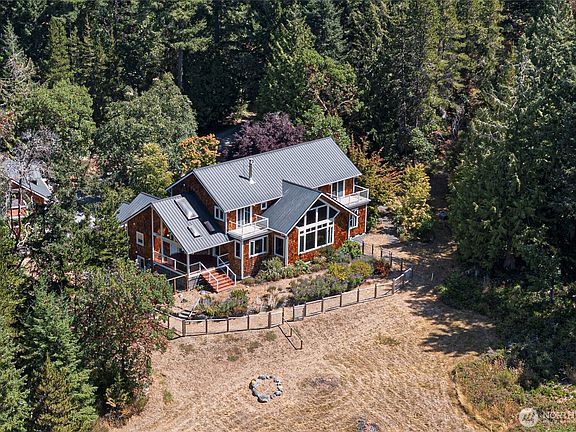 A rare opportunity to own a large acreage estate near Snug Harbor Resort on the West Side of San Juan Island. Main house has 3 bedrooms with principal bedroom on main floor. Detached 3 car garage with lovely one bedroom guest quarters above. West facing views of the Straits from upper level. Gardens and privacy. Located at the end of a nice long driveway for privacy. A short drive to Roche Harbor Resort. A great value and ready for you to move in. Pre inspection completed and all important items repaired or replaced. 10 acres of mixed woodlands and meadows.