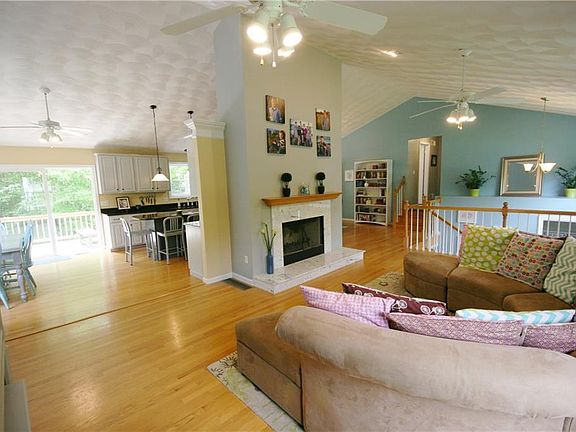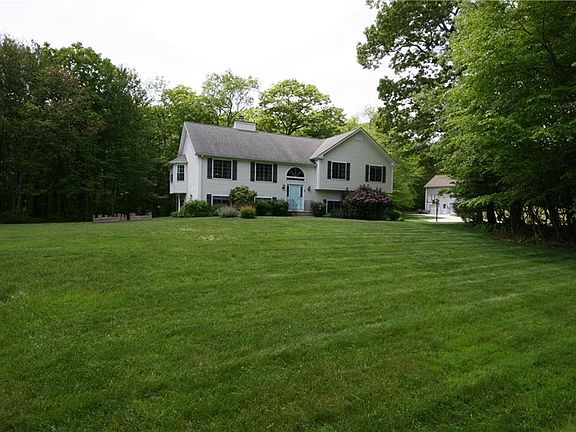 Bright, spacious, and sunny contemporary situated on 7+ acres just outside Historic Kingston Village. This home's open floor plan with cathedral ceilings and hardwood floors features a large center island kitchen with an additional eating area and sliders to the rear deck. The main living area also has a huge living room with marble fireplace and separate formal dining area. The upper level has a master bedroom with a walk in closet and private bath, two additional bedrooms and a common full bathroom. The lower level boasts a huge family room, yet another full bath and large laundry area. Lastly, there is an over-sized two car garage! All this is tucked away in a private residential compound with a small fresh water pond!