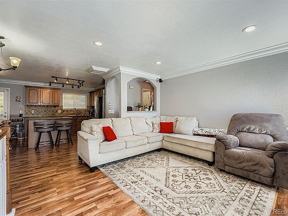 Nestled on a peaceful cul-de-sac, this inviting 4 bedroom, 2 bath home in the Aurora Highlands subdivision offers comfort, convenience, and privacy. The island kitchen boasts stainless steel appliances and ample workspace, seamlessly leading to the cozy family room where a warm fireplace creates a perfect gathering spot. Step outside to a covered deck overlooking the private large backyard, shaded by mature trees—ideal for relaxing or entertaining year-round. Conveniently located near daily amenities and local parks, this home blends functionality with a welcoming atmosphere in a desirable neighborhood setting. 4.125% Assuable rate available!