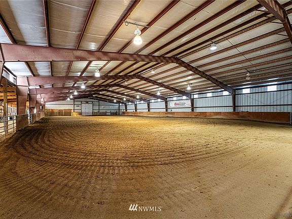 Welcome to Twisted Pine Arena a gorgeous equestrian estate. This amazing property was designed for the true horse enthusiast w/ amazing indoor arena (109' x 193') 10 stalls, the perfect set-up for any English/western horse activities. Stunning home w/floor-to-ceiling windows in the living room & a stunning river rock fireplace. Enjoy the spacious kitchen w/views of your horses. Primary bedroom is warm & inviting w/a slider that opens out to a deck w/beautiful territorial views. Guest room w/ pastoral views. Lower level offers living space, extra finished room & full bath w/jetted tub. A secluded paradise just minutes to Hwy 16, ferries, shopping & amenities! Includes ADU/MFH with 2beds/2bths.