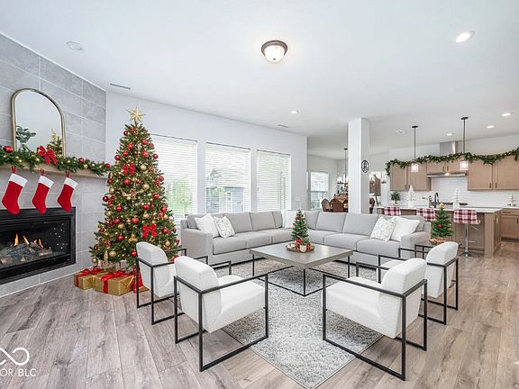 Welcome to this beautifully maintained, barely-lived-in two-story home built in 2023 by renowned builder, David Weekley Homes. Located in the heart of Fishers, this spacious 4-bedroom, 3-bathroom residence offers modern comfort and flexibility with an open-concept layout, 10 foot ceilings and thoughtful upgrades throughout. Enjoy a bright and airy main level featuring a private office, perfect for working from home, and a chef-inspired kitchen with rich oak cabinetry that flows into a generous living and dining space-ideal for entertaining. Upstairs, a large bonus room and open loft offer endless possibilities, including the potential for a fifth bedroom and a conveniently placed laundry room. This home is part of a vibrant and growing neighborhood with exciting new amenities underway, including a community pool, clubhouse, and scenic walking paths - and a quick drive to Hamilton Town Center! Don't miss your chance to own a like-new home in one of Fishers' most sought-after communities! Don't wait to build when this home includes blinds, a refrigerator, water softener, a water filtration system, fridge and EV tesla charger. Washer and Dryer negotiable. HSE School system. Christmas Photos have been digitally altered to remind you that this house could shine during the holidays!