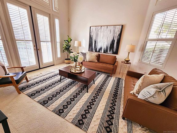 Welcome to LOMAS DEL MAR! Close to restaurants, shopping and outdoor recreation. Homemade dinners are a breeze on your solid, covered patio! Here is a "must see" opportunity to live in Lomas Del Mar, a highly sought-after development just off of of Via Da La Valle. This appealing 4-bedroom, 2.5-bathroom charmer offers a split-level, inviting layout with ground floor convenience and upstairs privacy. The property is an easy pedestrian distance to Flower Hill promenade, and just a short 3 miles to the ocean. Across the threshold, you will find it's classic charm. Featuring hardwoods in the foyer and kitchen, an open layout, bathed in natural light. A neutral palette, vaulted ceilings, and two gas burning fireplaces (living room and primary bedroom). With ample room for food prep, the kitchen is equipped a Viking double oven and a gas range in the island. Located on the main floor, the peaceful primary bedroom includes a spacious walk-in closet and a private bath with a separate tub and shower. The other three bedrooms, distributed on multi-levels for privacy, are spacious with large closets and ready to reflect your good taste in decor. The attached two-car garage has lots of newer cabinet storage. Exterior includes an inviting private patio and a breezy front porch. This home has been loved and cared for by its original owners. It's ready for a new family to make it their own.