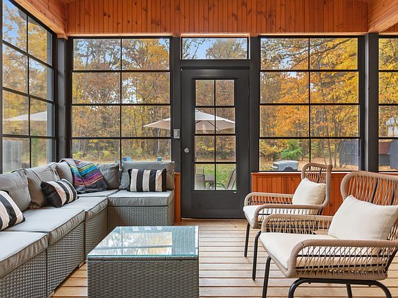1.5-acre exquisite 4BR/2.5BA FULLY FURNISHED home near Lake Michigan beaches! Soaring cathedral ceilings, a stone fireplace, and hardwood floors create a warm, inviting space. The chef's kitchen features a granite island and high-end appliances. Relax in the enclosed porch, on private decks, or by the pool and hot tub. The spacious yard includes a patio, grill, and outdoor shower. Stylish bedrooms, spa-like bathrooms, and just 5 minutes to dining, wineries, and more!