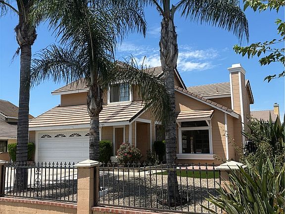 Beautiful Two Story home with large entry way. Backyard has a Covered Patio with a large back yard. Perfect for a swimming pool. This lovely home has 3 bedrooms and 2 1/2 baths and has recently been updated with new kitchen quartz counters, backsplash, stainless steel appliances, Laminate flooring throughout family room and living room. New paint inside and new carpet.Fireplace in Living room and nice large family room. Close to major Shopping centers and Restaurants and the 215 and 60 Freeway. This home is a must see.