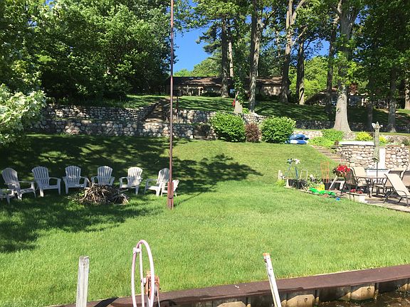 100' OF PRIME SPRING LAKE WATER FRONTAGE WITH AN EXTENSIVE STEEL SEAWALL AND 80 FT CRUISER DOCK, positioned on over 2 private wooded acres on a quiet dead end street in the Spring Lake School District. Enjoy breathtaking views from this 4 bedroom, 2 full bath 2,400 sf well-maintained sprawling ranch style home. Enter through the inviting foyer that leads to the huge open living room, w/tile floors and a cozy marble wood burning fireplace that leads to the fully applianced kitchen with a large window overlooking the lake & snack bar/dining area with sliders to patio where you can relax and enjoy the gentle lake breezes. Other features include: newer electrical & roof, detached 2 stall garage w/electric & water-great to store your extra vehicles & watercraft.