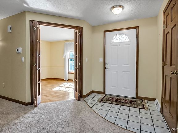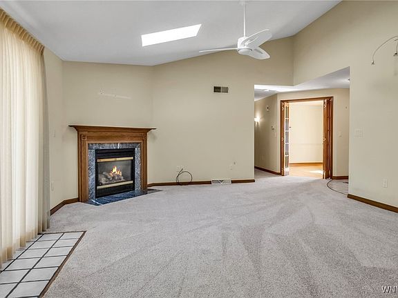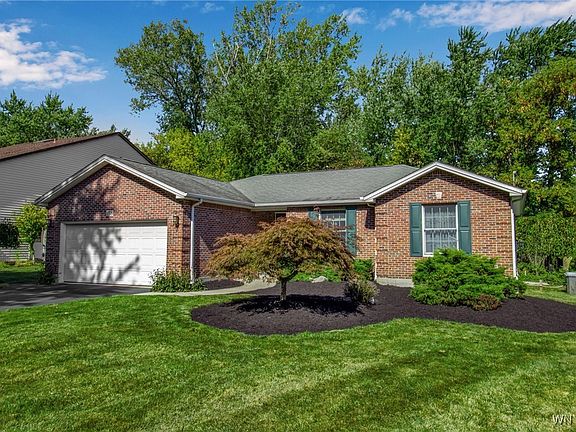 MUST SEE!!! SPACIOUS & beautifully appointed luxury ranch in Williamsville; MOVE-IN READY with highly rated Williamsville schools. This desirable home rests at the end of a peaceful neighborhood street with an almost park-like setting, backing to mature trees for incredible privacy and quiet while just minutes from Transit Road and the amenities of the Village of Williamsville. Featuring a charming eat-in kitchen with bright white cabinetry, vinyl flooring & tile backsplash with black mosaic accent opening to the generous living room with vaulted ceiling & skylight for an abundance of natural light and an inviting gas insert fireplace for those cool autumn evenings. Brand new carpeting throughout leads into two bedrooms including the primary with alluring tray ceiling and ensuite bathrm with tile floors, crisp shower surround & jetted tub. The 3rd bedroom/den has French doors and gorgeous hardwood while the main bathrm has classic checkerboard tile flooring w/attractive finishes. Step out the sliding glass door to the large back deck to relax and sip your morning coffee while the birds chirp and the partially finished basement is ideal for extra storage or future living space. Impeccably kept with an attached two car garage and fully fenced yard for EASE OF LIVING, this picturesque home has many updates including carpet & landscaping 2025, A/C 2024, HWT & whole house generator in 2019, newer sump pump and high-efficiency furnace! Low taxes, great schools and showings begin 10/8/25.