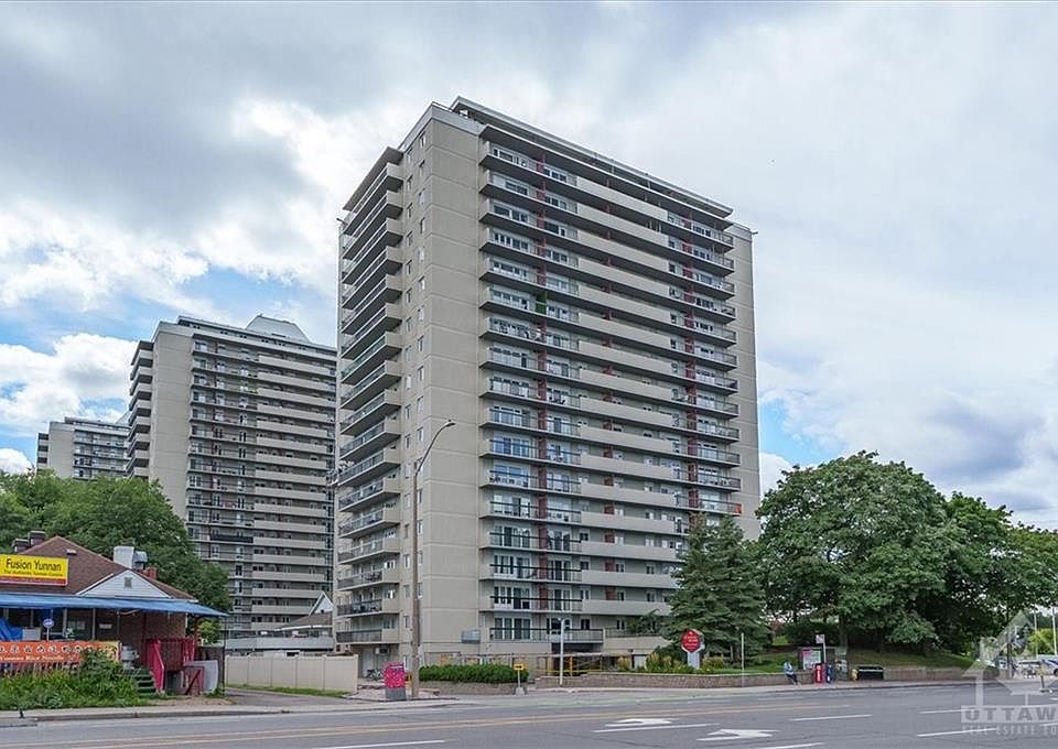 Welcome to Chateau Vanier! Attention investors! Perfect location for Ottawa U students or retired couple who just want to rent. Sunny corner unit, 3 bedrooms 1 bath with in suite storage locker. Updated kitchen with island. All appliances included. Unit has dishwasher, laminate and hardwood flooring throughout, tons of closet space in entrance, freshly painted, large balcony, underground parking, steps from transit, a mere few minutes from downtown, and close to the pedestrian bridge to Sandy Hill. Groceries right across the street and LCBO, Shoppers Drug Mart, and Tim Hortons are just a couple of minutes away. Take a walk to Riverside Park to use the tennis courts, walking paths, playgrounds and much more! Tons of amenities on site (gym, sauna, pool, party room and even a hair dresser). Great price for being so close to downtown Ottawa. Please note that the unit is currently vacant.