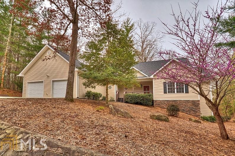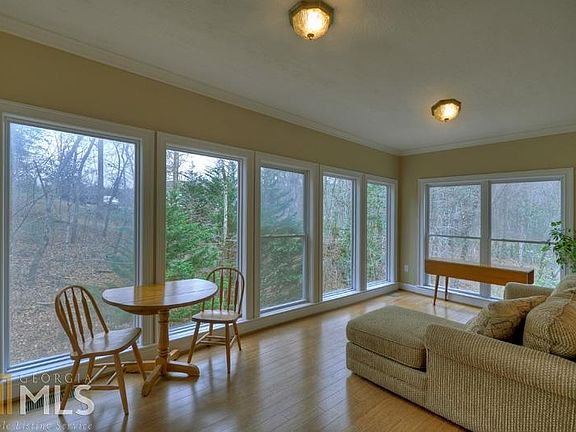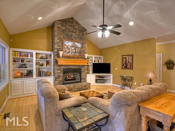 Lovely low maintenance 3BR/3.5BA home in the Bluffs of Cartecay in Ellijay...Fantastic Location! This ranch style home features popular split floorplan w/quality finishings throughout the home including cathedral ceilings, stone fireplace, built-in shelving, real wood bamboo floors, welcoming sun room, wet bar in the back foyer (great for entertaining). Large country kitchen w/island, cabinets galore & breakfast booth. Spacious master suite w/his & hers vanity areas, huge walk-thru closet, jetted tub & sep shower. Laundry, half bath & home office also on main. Supersize family room in basement w/surround sound, plus lg area of unfinished space providing opportunity for more bedrooms/ample storage! Nice neighborhood provides gated security, tennis & pool.