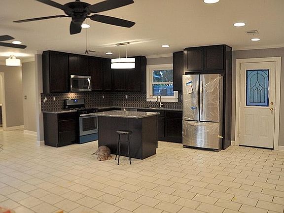 completely remodeled, everything new, microwave, gas stove, dishwasher, fridge, New tile floors , Bed room carpet, granite countertops, back deck/patio. property has large live oaks and a storage house. New streets and sidewalks. Short Walking distance to the beach and Edgewater Mall.