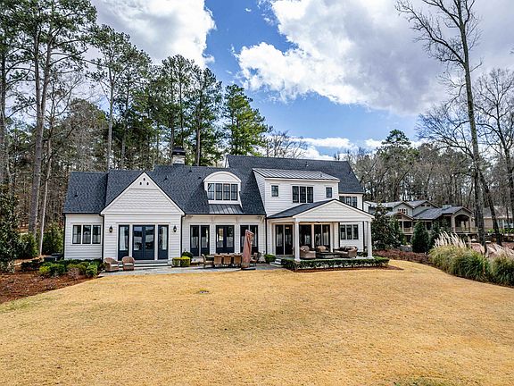 Welcome to this breathtaking, like-new modern farmhouse in the prestigious Sebastian Cove community on Lake Oconee. Boasting 5 bedrooms, 5.5 baths, and approximately 4,000 sq. ft., this home sits on a level lot with unparalleled 180-degree lake views. The sought-after main-level walkout leads directly to a beautifully landscaped backyard. Inside, the chef’s kitchen is a culinary masterpiece, featuring Sub-Zero and Viking appliances, custom cabinetry, and a wine cellar. The expansive great room is perfect for entertaining, complete with an additional wet bar, while floor-to-ceiling windows showcase stunning lake views. Step through French doors onto the covered lakeside porch, the perfect spot to enjoy spectacular sunsets. Outdoor enthusiasts will love the bocce court with LED lighting, new composite dock with boat lifts, and the state-of-the-art sound and security system with commercial-grade WiFi. The oversized two-car garage provides ample storage, and the home’s prime location is just minutes from shopping, dining, and walking trails. Additionally, the seller has a separate lot available in Reynolds Lake Oconee, which can be purchased to provide eligibility for a Reynolds membership further enhancing your lakeside lifestyle. This Lake Oconee dream home is a rare opportunity