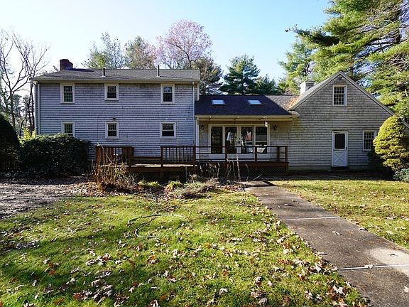 Almost an acre of land with this spacious Foxboro home boasting beautiful hardwoods throughout. Lots of storage too, all in a convenient location with easy access to Route 95. New Septic System. The home needs your updates but has the potential to be spectacular. 15' x 12' sunroom with 2 skylights and slider to a large deck and access to oversized 2 car garage with stairs to unfinished loft. Kitchen with dining area and built in desk. Good sized dining room will accommodate a large table in front of the Bay Window. Large front to back living room/family room where everyone can relax in front of the beautiful brick hearth fireplace. Full bath off of 1st floor hallway. On the second floor off a wide hallway there are 4 bedrooms and another full bath. 2nd Fireplace in basement. Central air. Some replacement windows in home and roof was replaced in 2015 according to public records.