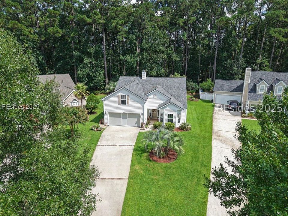 Charming and meticulously maintained, this 3 bedroom, 2 bath home with bonus room above the garage (flexible 4th bedroom/playroom/office) is tucked away on a quiet cul-de-sac in The Farm at Buckwalter Community. The original homeowner has cared for this property with pride, offering buyers a move-in ready home in one of Bluffton's most convenient locations. Inside, the home features hardwood flooring in the living room and primary bedroom, a cozy wood-burning fireplace with elegant surround, and a renovated primary bathroom with a walk-in shower and soaking tub. The kitchen boasts tall cabinets, stainless steel appliances, and ample counter space, perfect for everyday living or entertaining. Enjoy year-round comfort in the enclosed heated and cooled porch, overlooking the private backyard with wooded views and patio. The bonus room above the garage adds flexibility as a 4th bedroom, playroom, or home office. This property offers both privacy and convenience, located minutes from schools, shopping, dining, and all that Bluffton has to offer. A true gem, this home combines thoughtful updates, timeless features, and an ideal setting.