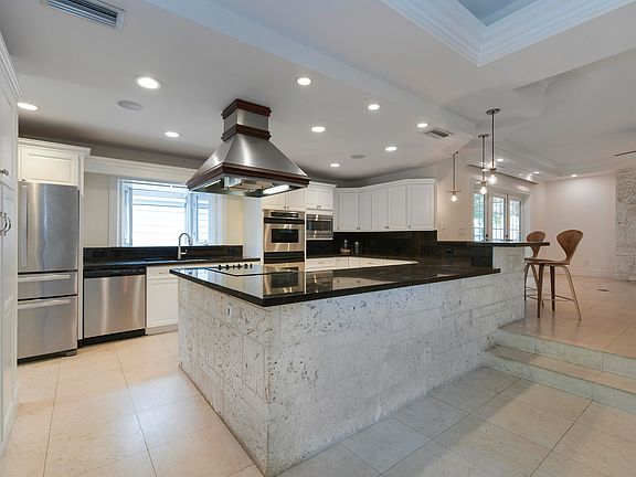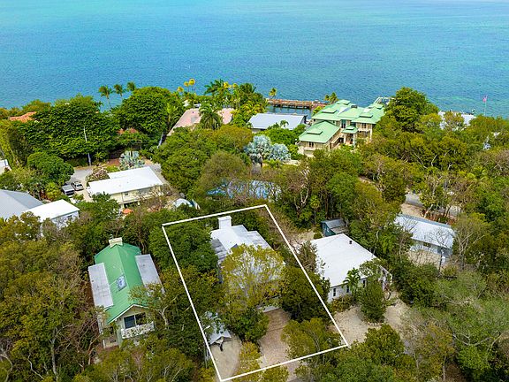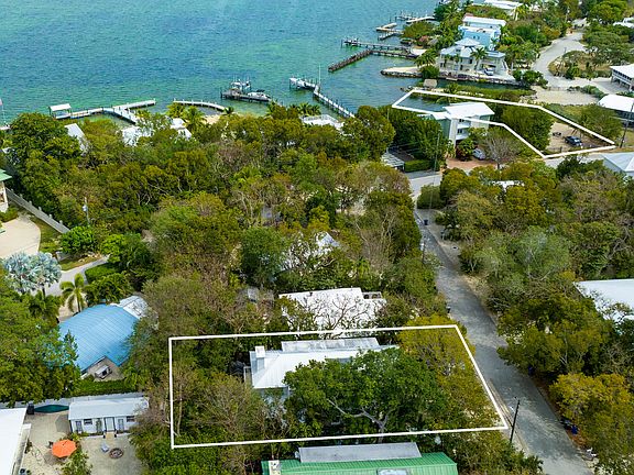 Situated on top of the hill in the Plantation Key neighborhood of Key Heights is this attractive custom built three bedroom, three bath home. Special amenities include travertine and hardwood floors, tray ceilings with cove lighting, fireplaces, french doors, balconies, a spacious kitchen with granite countertops and stainless appliances, a large living and dining room, plus a den and half bath on the first level. A beautiful stairway leads upstairs to two adjoining guest bedrooms with shared bath, a large primary suite with a balcony, spacious bath, walk-in closet and a fireplace. The upstairs landing also accesses conveniently located laundry and extra storage with plenty of natural lighting throughout this well designed home. A screened porch leads to the fully fenced back yard which is complete with a turf yard, sand area, deck, and storage shed. Key Heights HOA park is right down the street providing bay access for boating, fishing, sunset viewing, and clear bay water frolicking.