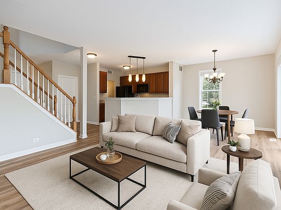 This Beautiful END UNIT with 3 Bed/2.5 Bath/LOFT in Blackberry Knolls has been updated with NEW PAINT (2025) & NEW FLOORING THROUGHOUT (2023) and it's MOVE IN READY! Enjoy OPEN FLOOR PLAN, 9' Ceilings, PRIVATE ENTRANCE, LARGE 2 Car Garage, NEWER WASHER & DRYER (2023), NEWER CARPET upstairs (2023), New Luxury Vinyl Plank flooring on the main level (2023), Private Patio Surrounded by Mature Evergreens for additional privacy & shade. As you enter the home you will find a spacious first floor with two storage closets, foyer, kitchen and living room/dining room area sliding glass door to the back yard/patio. UPSTAIRS you will find a large Master Suite with beautiful VAULTED ceilings, HUGE Master Bath & walk in closet. 2 additional large bedrooms and a LOFT. This unit has lots of beautiful natural light all day long! Neighborhood has several Walking Trails, easy access to the GILMAN trail form miles or miles fun, Close to Shopping, dining and entertainment, EASY access to Orchard Rd., I88, Route 34 & 47. Excellent Oswego School District. Move-in Ready. INCLUDED are: SNOW REMOVAL, LAWN CARE & EXTERIOR MAINTENANCE. Investors welcome, unit CAN be rented!