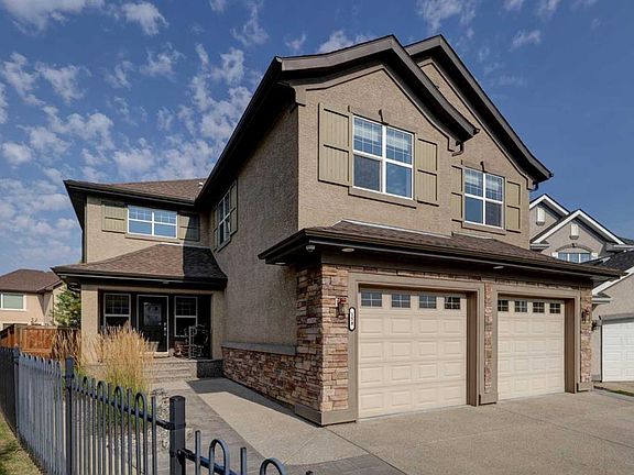 Welcome to 158 Cranridge Terrace SE, a move in ready home that perfectly blends elegance, comfort, and family friendly living. Set on an oversized lot beside a park and the scenic Cranston Ridge pathway system, this fully finished 2-storey walkout offers the space and lifestyle you’ve been searching for. Step inside to a grand 2-storey foyer, filled with natural light, that leads you into the heart of the home. The modern kitchen is a chef’s dream, featuring granite countertops, a central island with eating bar, stainless steel appliances, a spacious pantry, and extensive cabinetry. The open concept dining area easily fits a full family table, while the adjoining living room with cozy gas fireplace overlooks the park. A dedicated main floor den and convenient powder room complete this level. Upstairs, retreat to the serene primary suite with downtown views, a custom walk-in closet, and ensuite with soaker tub, dual vanities, and separate shower. Two additional bedrooms share a bath, while a central bonus space with mountain views and an upper laundry room add everyday convenience. The walkout lower level is designed for entertaining, complete with a spacious family room, second fireplace, wet bar with bar fridge, dishwasher, and microwave, plus a fourth bedroom and full bath, ideal for guests or teens. Step outside to your stunning professionally landscaped yard with stamped concrete patio, hot tub, and spacious backyard, perfect for year-round enjoyment, and 'outdoor living'. You will love the oversized heated garage with lift-ready doors, hot/cold water taps, and extra storage. Additional upgrades include central A/C, built-in speakers, a security system with cameras, underground sprinklers, and a garden shed. With its prime location, incredible amenities, and thoughtfully designed living spaces, this property is more than a house, it’s a place to call home. Don’t miss your chance to own one of Cranston’s most desirable homes. Schedule your private tour today!
