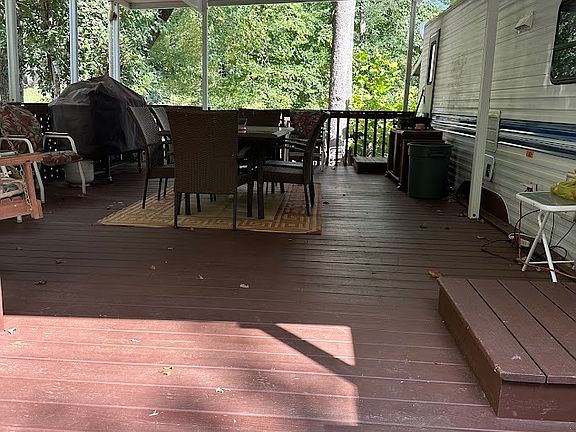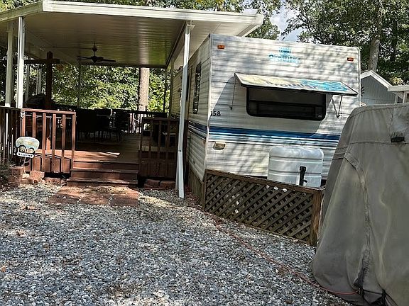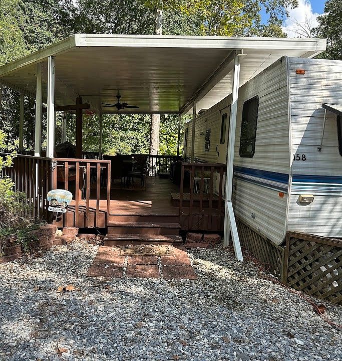 Welcome to 158 Creekview Drive in the gated Brookside Campground community of Cleveland, GA. This charming property includes both the deeded RV lot and a well-maintained 38' Prowler RV, offering a turn-key setup for weekend getaways or seasonal living. Relax on the spacious covered porch that extends right to the creek's edge-perfect for fishing, morning coffee, or evenings around the firepit. The RV comes fully furnished, so you can move right in and start enjoying the outdoors. The community itself is beautifully kept and designed for peace and relaxation, featuring a swimming pool, community deck, paved walking paths, playground, and pavilion-all for members only. Pets are welcome on a leash, and tent camping is not permitted, helping preserve the tranquil, community-oriented setting. Conveniently located near Helen, Cleveland, and the surrounding North Georgia Mountains, you'll be close to local wineries, charming shops, hiking trails, and endless outdoor adventures. Whether you're seeking a cozy retreat or a place to enjoy the beauty of nature, this property offers the perfect balance of comfort, convenience, and outdoor living.