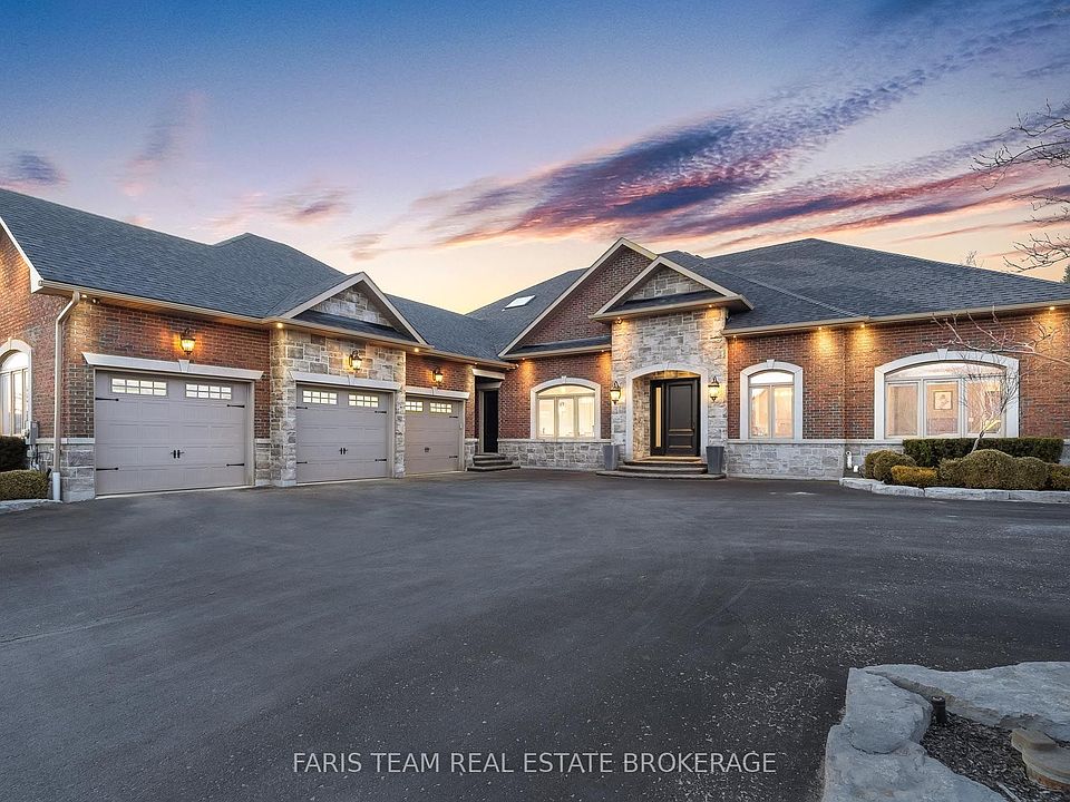 Top 5 Reasons You Will Love This Home: 1) Executive, custom-built bungaloft in an exclusive estate neighbourhood, perfectly positioned and backing onto greenspace for ultimate privacy 2) Exquisite attention to detail and design with coffered ceilings, wainscoting throughout, and high-end finishes at every corner including a Sonos speaker system running throughout the home including the exterior as well 3) Extensive landscaping featuring a sparkling inground saltwater pool with a new liner, a convenient outdoor bathroom, a covered concrete porch, an inground sprinkler system, an e collar dog fence, and an abundance of tranquility for outdoor relaxation or entertaining 4) Opulent primary suite boasting two oversized closets and a spa-like ensuite, thoughtfully designed for indulgent relaxation 5) Loft showcases a media room, while the impressive seven-car garage features a lift, offering endless possibilities for storage, entertainment, or a dream workspace. 4,578 sq.ft. plus an unfinished basement. Age 11.
