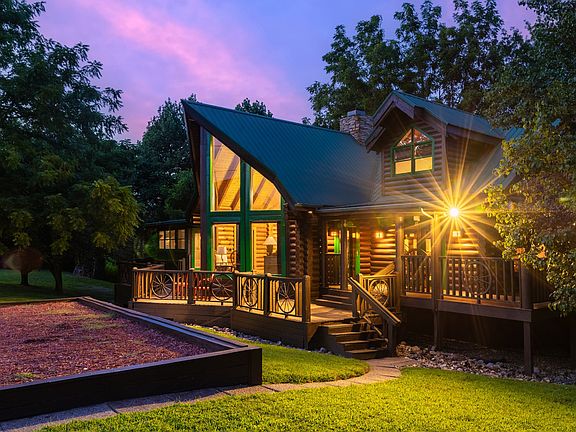 Custom built log homeFully finished basementProfessional gym equipmentCustom built-in shelvingSpacious walk-in closetStone fireplaceStunning sunset views
