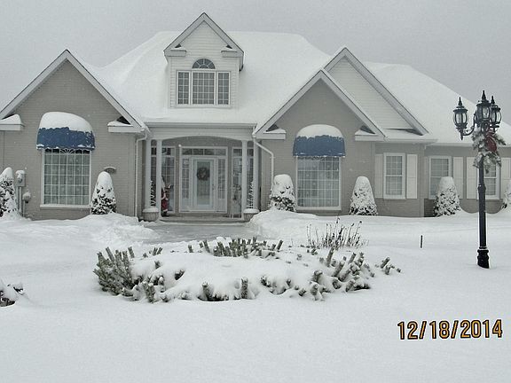 This home has 3 bedrooms, 3 bathrooms, 2 kitchens-upper kitchen with backsplash and under cabinet lighting, stainless steel appliances, 2 living rooms, dining room, laundry room, 2 garages (1-2 car (heated, finished and insulated) and 1-1 car-heated), 2 paved driveways, 2 decks each 14x34 (one is enclosed/screened in), hardwood floors, ceramic tile, granite counter top, ten foot ceilings, living area ceilings are 15 feet , loads of natural light, radiant heat ,tray lighting bedrooms and dining room. Beautiful view of Canada