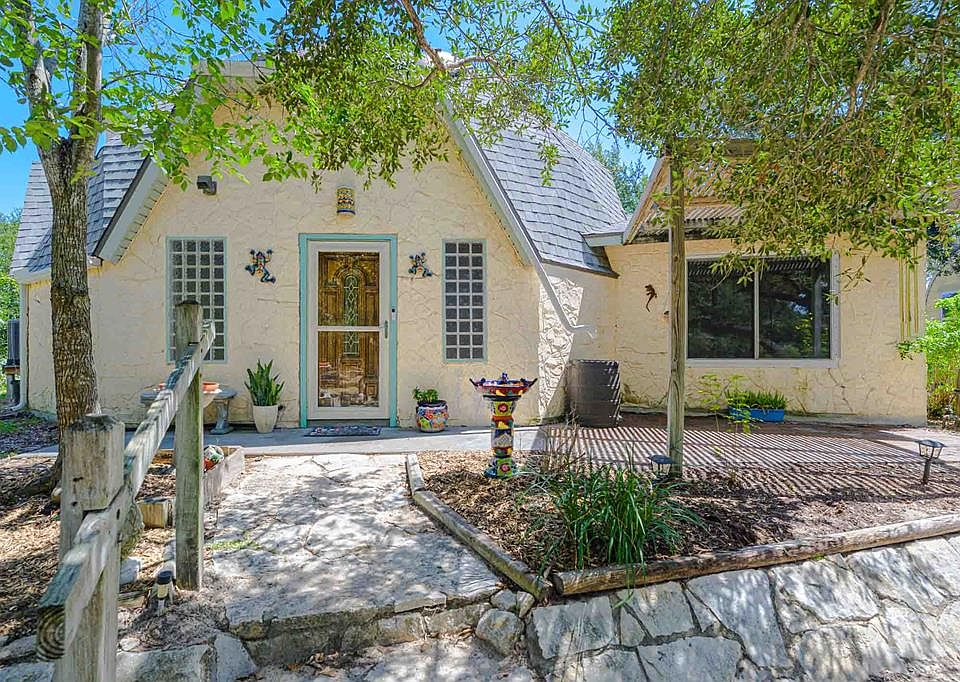 Absolutely charming and unique, this 3-bedroom plus studio, 2.5-bath dome-style home is nestled on over 3.5 acres with a pond, mature landscaping, 2 pastures, garden area and plenty of room to enjoy the peaceful Rockport lifestyle. Once the home of renowned local artist, this property is thoughtfully designed for both creativity and comfort away from the busy life with a 'whimsical' flair, just minutes from the convenience of town. The main level features a spacious master suite, living room with cypress panel accent wall, den/study, kitchen, utility room, and a lovely sunroom with a cedar ceiling and walls of windows that invite in natural light and showcase the surrounding wildlife perfect to watch hummingbirds! Upstairs you'll find two additional bedrooms with a versatile loft perfect for an office or reading, a guest bath with walk-in shower. Step through the charming pergola and private patio with firepit to a 360 sq. ft. studio/workshop—perfect for artists, hobbyists, or additional flex space and huge storage room. The property also includes a covered carport, a livestock shed, and RV hookup with privacy fence. This solid, energy-efficient dome design offers a rare opportunity to experience the best of nature, space, and privacy, all while being minutes from the heart of Rockport Art's District and the beach!