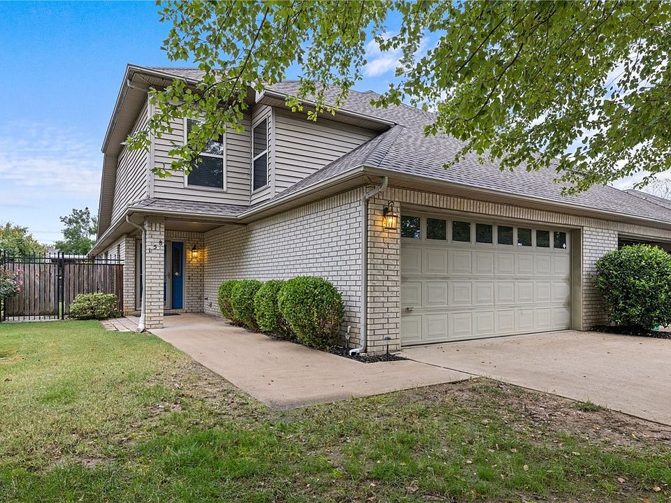 Are you looking for ease, convenience and comfort? This townhouse is exactly what you've been searching for! Location is ideal and near shopping, grocery stores, Washington Regional Medical Center, I-49, and the University of Arkansas. Home is clean, well cared for, freshly painted, and landscaped. Downstairs you'll find a living room with extra tall ceilings, fireplace, a half bath, kitchen with plenty of cabinetry and granite countertops, a large dining space, and a primary bedroom that offers a large walk-in closet, and fully tiled stand alone shower. The winding staircase is architecturally interesting and leads to two upstairs bedrooms with ample storage and a full bath. Lawn maintenance is covered by North Heights POA. Come see this wonderful home in person!