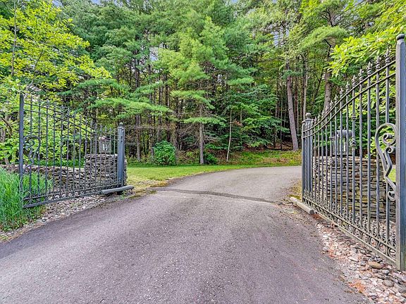 A few of the numerous outdoor amenities of this gated property include custom bridge, approximately 3/10 of a mile of paved driveway, outdoor lighting and bug zappers, electrified gazebo, stream-side fire pit, decks with expansive views, concrete basketball half-court, hot tub, heated inground pool, open stream-side meadow, fish-stocked stream and lake, waterfall, dock, woods, buried utilities (electric, propane), Generac generator, and professional landscaping with sprinkler system.