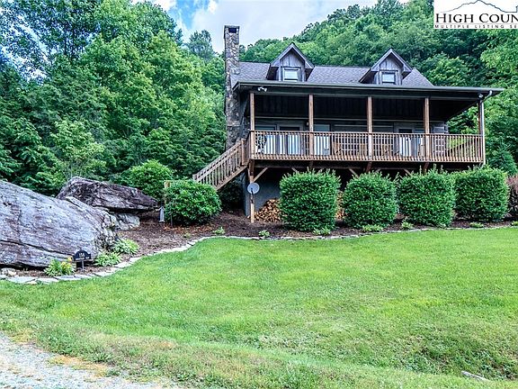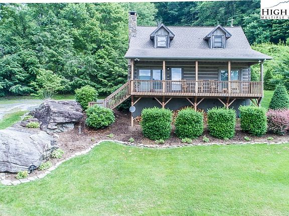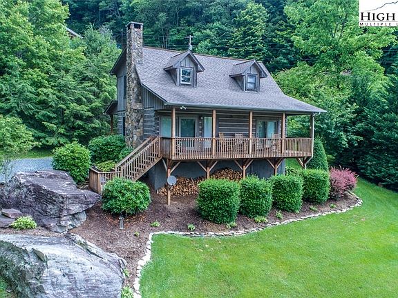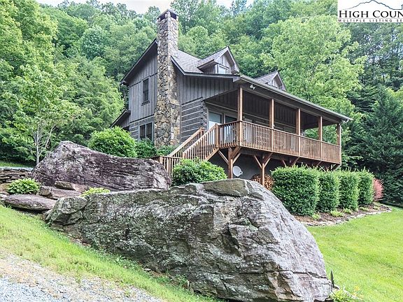Beautiful, well constructed log cabin just 1.5 miles from the Mast General Store and fine dining in Valle Crucis! Main level contains the master bedroom and bath, great room with a floor to ceiling stone wood burning fireplace, dining area and kitchen with granite countertops. The home has lovely dark stained wood floors, wide planked paneling and tongue and groove pine ceilings throughout. The second floor has a large sitting/sleeping area and a second bedroom and bathroom. It has beautiful grounds with large boulders and lovely trees in a quiet setting. Relax on your 32x8 foot covered front porch with a direct view of Grandfather Mountain! Centrally located in the High Country!