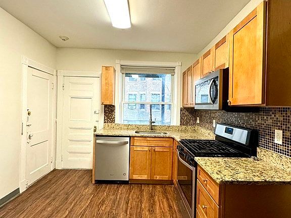 This charming freshly painted condo features 2 bedrooms south facing bedrooms with good size closet space, high ceilings, built-in China cabinet in dining room, an updated kitchen, covered back porch, one bathroom and the laundry in the basement. A great location close to supermarkets, restaurants, local hospitals, quick access to nearby schools, and a short walk to the B line (green line). Don't hesitate to reach out with questions or schedule a showing! Video tour available upon request. Good investment property as well. Ready for move in. Virtual Tour Available.