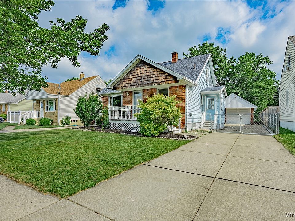 This updated Cape Cod in Cheektowaga offers charm, functionality, and a layout that suits a variety of needs. Step inside to find updated vinyl flooring throughout and a flexible floor plan featuring a convenient first-floor bedroom and recently updated full bath—perfect for guests or one-level living. In the kitchen you'll find stainless steel appliances included for the ease of making this truly move in ready. You'll find a cozy living room with bay window that lets in tons of natural light. Upstairs, is a second full bath along with two additional bedrooms. The extra-deep garage provides for generous storage, while the fully fenced backyard offers both privacy and room to enjoy the outdoors. Central air keeps things comfortable year-round, and the partially finished basement adds versatile and valuable bonus space. You'll find many updates throughout the home including 6 new vinyl replacement windows (2024). 158 McNaughton is nestled against a wooded backdrop for added tranquility, yet just minutes from the thruway, shopping, hospital, and nearby parks—this home blends peaceful living with everyday convenience.
