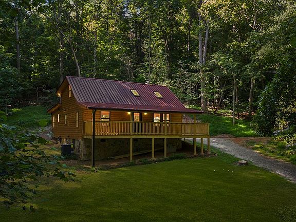 Adorable spacious cabin on a perfect lot! This cabin is built with true quality using large sawn wood beams, stunning tile accent and more. You really do have to walk into this home to appreciate the modern touches and the warm cabin feel.