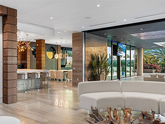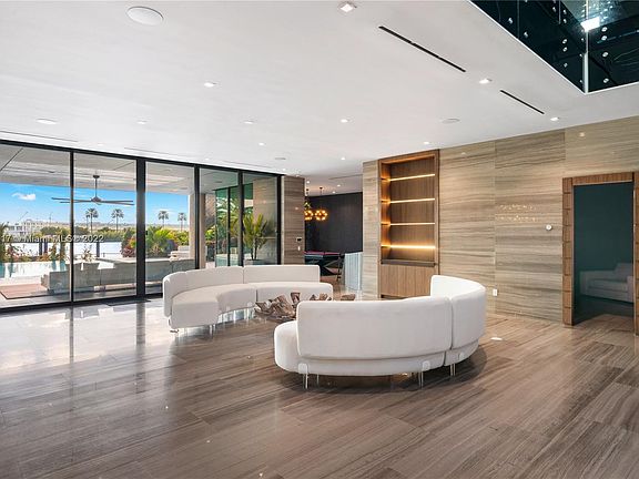 New construction masterpiece in one of the most coveted Miami Beach gated communities. This 14,000 + SF oceanfront masterpiece has it all. Enjoy 6 beds, 6/2 baths, office, movie theater, oversize chef's kitchen, stunning primary suite and detached 5 car garage with 2nd floor guest house. Private dock with 100' water frontage & stunning bay & skyline views, this setting provides the essence of Palm Island living while being minutes away from S Beach, Downtown & the Miami International Airport. 24 hour Miami Beach police security, park, playground, tennis & basketball courts, make for the ultimate MiamiBeach lifestyle. When location & space are everything - this property offers that & much more. **Bonus to Buyer's Agent though January 31st