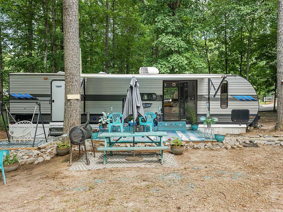 For Sale: Gorgeous .14 acre Lot with 2020 Forest River Salem Camper in Lake Royale Community with GOLF CART! This 2 BR/1 Bath gem is nestled in the coveted gated community, boasting a 345-acre lake perfect for boating, fishing, swimming, and water sports. Explore a wealth of amenities exclusively available to residents and their guests: community swimming pool, tennis and basketball courts, lakeside clubhouse for events, open-air Pavilion, two beaches, docks, boat launches, outdoor fitness park, RV-friendly campground, parks, playgrounds, and acres of wooded areas. Enjoy public access to The River Golf Course, an 18-hole masterpiece at the community entrance. Don't miss this opportunity to own a slice of paradise!