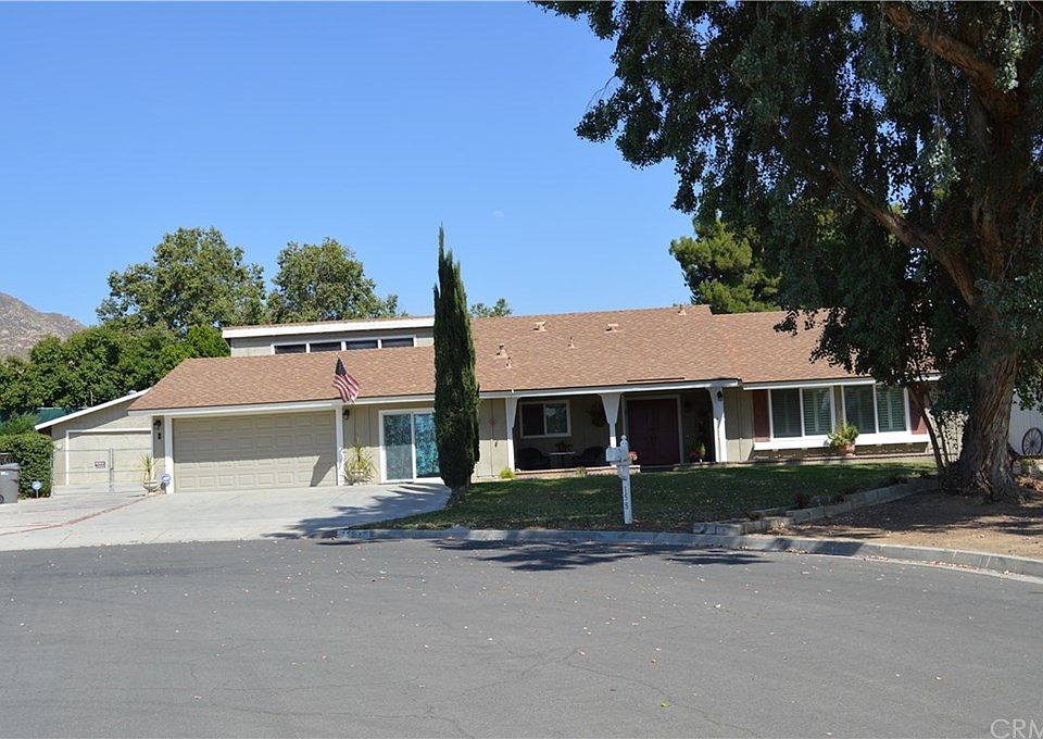 Ranch style house at the end of the cul-de-sac. Extra large lot with big back yard, swimming pool, RV Parking, 2 Large Bonus Rooms, storage shed, fruit trees, oversized detached garage, stucco exterior with some wood siding. Kitchen features: Granite counters, walnut oak cabinets, island with stove and appliances all stainless steel. Huge Laundry room with office area in it for mom to have a receipe or craft room. Family room has vaulted ceilings with upstairs storage area. Livingroom features: step down living area with fire place with mantle. Master bedroom is large and has a sliding door that leads out to the pool area which features covered patio, spa and is gated for child protection. Very peaceful neighborhood.