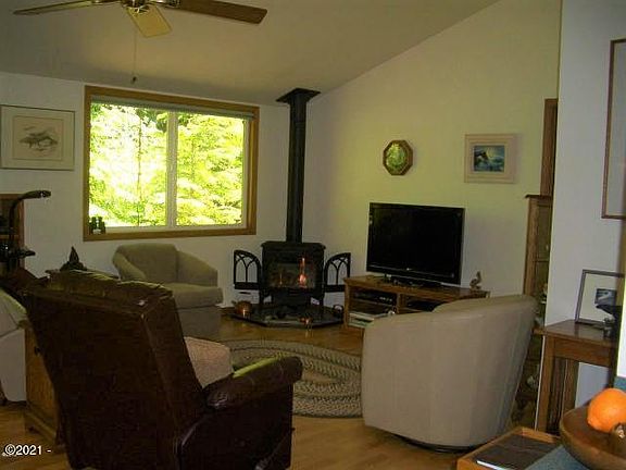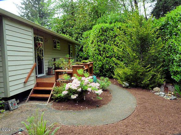 Single level Home though legally a condo it is not attached to another home. Two master suites, hardwood floors in Den, gas stove in living area, Corian counters, 50 year roof, vinyl windows, an oversized garage, backs up to a forest, close to walking trails to the oceanfront cliffs with all the extra benefits of Little Whale Cove including the RecCenter with an indoor pool and indoor and outdoor tennis/pickle ball courts, Library, fitness center, Jacuzzi and Sauna.