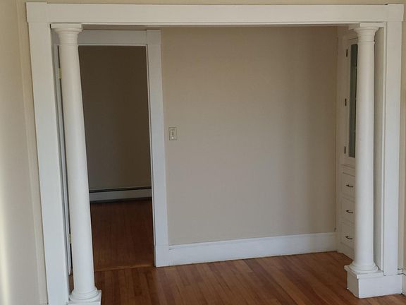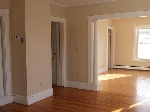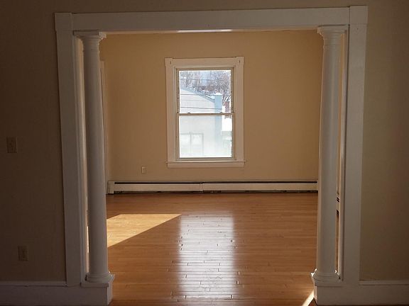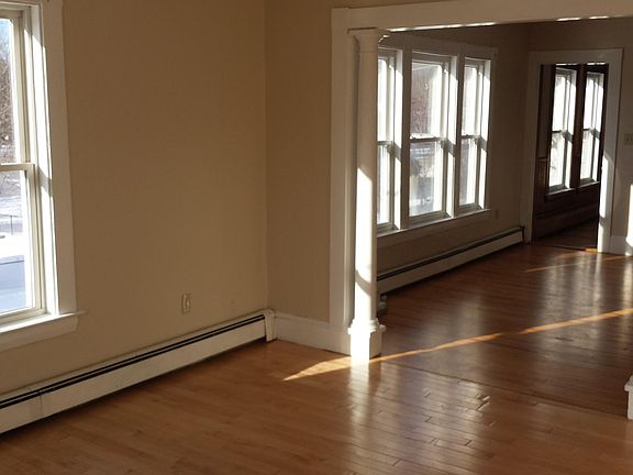 Great yard and plenty of off street parking. front and back enclosed porches. heat and hot water included. very large unit that has been remodeled recently. Newer vinyl windows, recent kitchen cabinets, recent countertop and sink, refinished hardwood flooring throughout. coin op washer and dryer in basement. Beautiful unit in a nice location. No smoking. No pets. complete verified application along with first months rent and $1250 security deposit required to move in. No exceptions. 158 Spring Street Lewiston