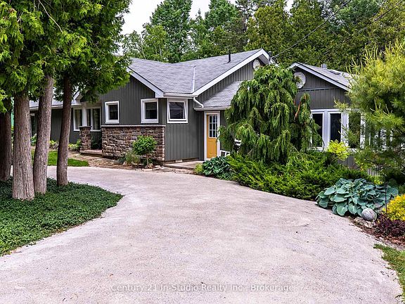 Welcome to this exceptional property that offers not only a charming 4-bedroom, 2-bathroom bungalow but also a lucrative marine storage and repair business. Located in a tranquil neighborhood, this versatile property presents an ideal opportunity for both residential living and entrepreneurial ventures. Closeby Black Creek Provincial Park (Big Sandy Beach) and only a few minutes from Lion's Head, you can enjoy the amenities of town and the warm waters of Lake Huron. The bungalow itself exudes warmth and comfort, boasting a single-level layout that provides convenience and accessibility. With four spacious bedrooms, there's ample room for a growing family or the potential to convert one into a home gym or hobby space. The two living areas are bright and spacious, perfect for entertaining or relaxation. There is also a sizable dedicated office space with a separate entrance for your business needs, designed to enhance productivity and professionalism. The front of the property surrounding the house is beautifully adorned with easy-to-maintain gardens, a serene pond, and a charming gazebo to enjoy your afternoon tea. However, the true standout feature of this property lies in its marine storage and repair facilities. Three expansive storage buildings, measuring 64' x 40', 80' x 40', and a staggering 244' x 40', provide abundant space to store boats, equipment, and supplies. Whether you're an avid boater looking for secure storage or an entrepreneur seeking income opportunities, this setup is perfect for your needs. Call your REALTOR today!