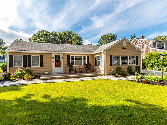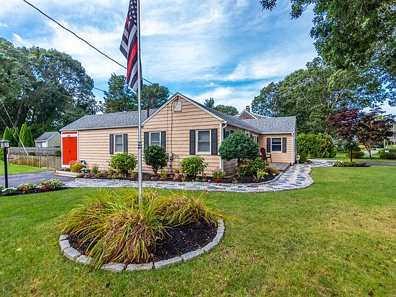 Pocasset Tahanto Beach Association. This is an adorable, converted cottage with 5 rooms, 2 bedrooms and 2 full baths. Featuring a fireplaced Livingroom with HW floors, large eat-in kitchen with oak cabinets, electric cooking, microwave and dishwasher. Sliders to patio and yard, Family room off the kitchen with beamed ceiling and wall to wall carpet. The exterior landscape is beautiful with a large cobble stone lined patio, walks and custom firepit everyone is sure to enjoy along with a large sundeck out front. Shed, underground sprinklers and more. The house has been upgraded by Mass Save for efficiency and is equipped with Oil heat and central air-conditioning. This is really a gem of a home and can be purchased with nearly all furnishings as shown. The beach access is directly across the street and there's multiple access points throughout the neighborhood. Tahanto Association also offers a boat loading dock with access to the Pocasset River and so much more. Summers coming, don't wait on this one! Most lenders will require flood insurance.