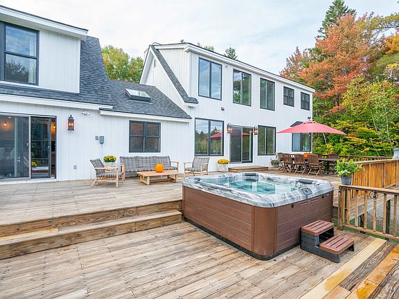 Indulge in the allure of this recently renovated, stylish 6-bedroom, 5-bathroom contemporary farmhouse nestled on 5.1 acres, offering an ideal haven for a family retreat. Immerse yourself in the serene atmosphere as you unwind in the 8-person hot tub. The property boasts a swim/ice skate pond, an expansive back deck, mountain views, a private hiking trail, and a charming stone firepit. Spanning 5,000 square feet, the home showcases an inviting open-concept floor plan with a fully equipped kitchen, living area adorned with a wood-burning fireplace, a separate dining room, a cozy den, two generously-sized bedrooms and 2 bathrooms on the main level. Ascend the stairs to discover primary ensuite bedroom, 2 additional bedrooms, 3/4 bath, and a versatile office space. The finished basement adds to the allure with a bedroom, bathroom, a family room featuring pool and foosball tables, and a custom bar for entertaining guests. Solid rental history for both short term and seasonal rentals. The location of this home is truly convenient providing easy access to Mount Snow or Hermitage Club, nearby restaurants and a wide range of four-season recreational activities. This meticulously designed home promises not just comfort but an elegant retreat.