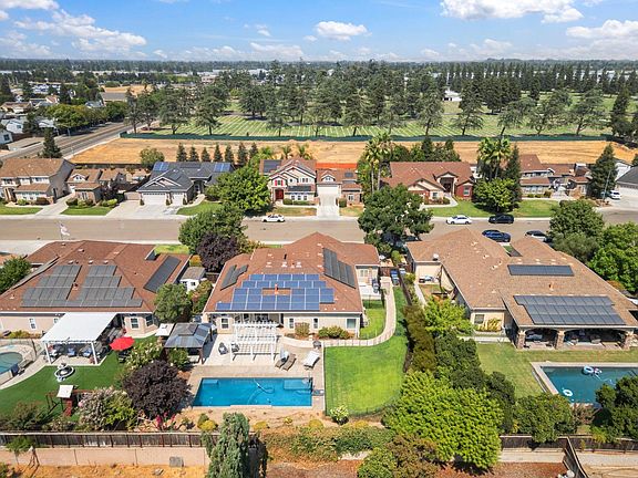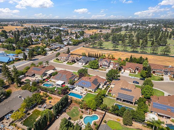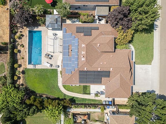 Location, Location, Location! Welcome to this spacious 5-bedroom, 3-bathroom home tucked away on a quiet cul-de-sac in the highly sought-after Buchanan High School area of Clovis Unified School District. Designed for both comfort and efficiency, it features 2 solar systems producing 23 kWh keeping energy costs low. The backyard is an entertainer's dream with a sparkling pool with water features, two pergolas for shaded lounging, and extended concrete perfect for gatherings. Mature landscaping on a 12,000+ sf lot adds beauty and privacy to the outdoor space. Inside, the large eat-in kitchen is the heart of the home, boasting stainless steel appliances, abundant cabinet storage, and plenty of room for family meals. Bedroom 3 includes its own sliding door entrance and fenced yard with patio, offering flexibility for guests, multigenerational living, or a home office. The 3-car garage provides ample parking and storage for all your needs. With its desirable location in Clovis, thoughtful layout, energy savings, and resort-style backyard, this home offers the perfect blend of functionality and relaxation. Call your REALTOR to schedule a showing as this home won't last.