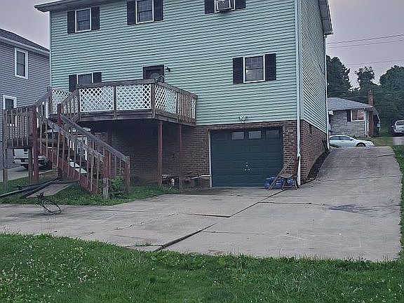 3 Bedroom, 1 Full Bath upstairs in bedroom area, plus 1- 1/2 Bath on main floor, plus Garden Tub and Sink in master bedroom as well; and has a Basement and 1 car garage. Eat in Kitchen with Oak Cabinets,Refrigerator, Range, Microwave, Ceiling Fan, plus Dining room and Large Family room on main floor. Upper floor has 3 Bedrooms, Master bedroom is very spacious (approx 360 sq ft) has a Garden tub and Vanity. Full Bath is located on Upper floor as well. Carpet and Vinyl plank flooring located throughout home. Basement is unfinished, Driveway can accomodate four cars and is paved. Central Air Conditioning on Main Floor. Gas and Electric Base board heating. Gas Water Heater. Gas Fireplace in Family room. Deck off Kitchen area at rear of house. Includes washer and gas dryer.