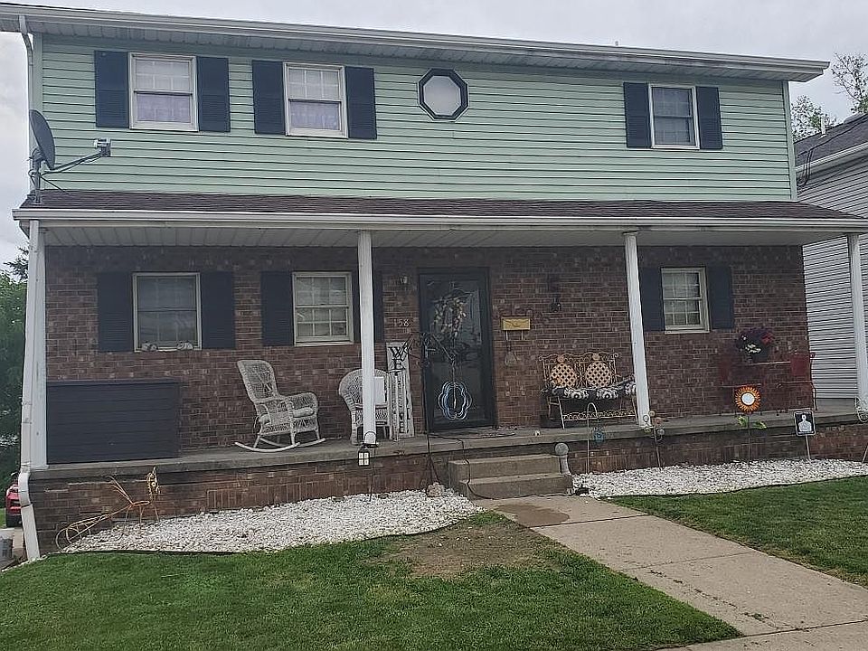 Foundation is concrete block with brick and upper floors are wood with siding. Large backyard.