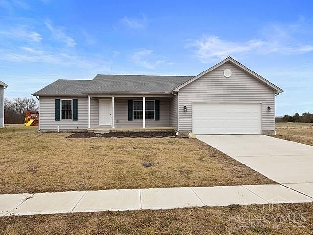 Within a 5 minute drive from Main Street, you will locate this well-kept 2 year young home built by TK Construction (Montgomery Plan). Open and spacious living room that splits the owner's suite from the other 2 bedrooms. Kitchen offers stainless steel appliances, plenty of cabinets and counter space, and a breakfast bar for quick meals. Breakfast Area is large enough for a table of 8. Oversized, fenced back yard with rural views for outdoor enjoyment and entertainment. Crawl Space is climate controlled. Home is located on a dead end street. 49 minutes to the airport, 43 minutes to downtown Cincinnati, 15 minutes to the Purina Pet Food Plant.