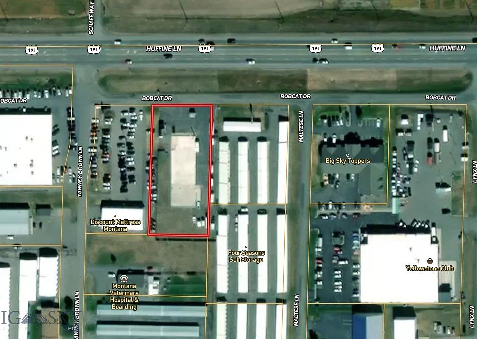 Prime commercial lot just off Huffine Lane, along the frontage Road, Bobcat drive. Ideal property for someone looking for Huffine/Bobcat drive frontage. Power to the lot, with service installed, well, and a Septic System installed. There is a 10,000 Sqft slab that may be salvageable. Buyers will have to check with Gallatin County planning & sanitation on the condition and usability of the concrete foundation on Septic. Buyers and buyers' agents to verify all information.