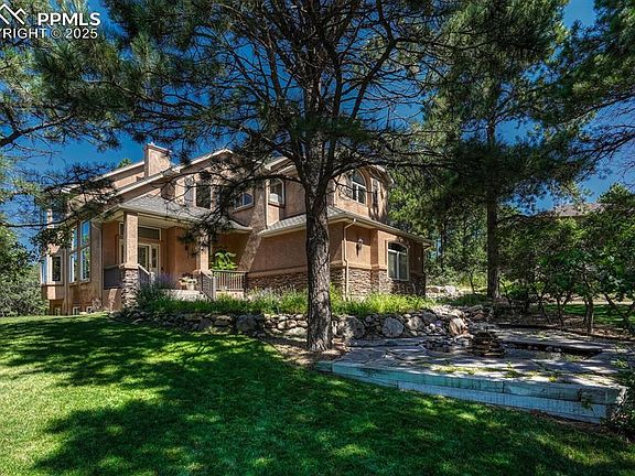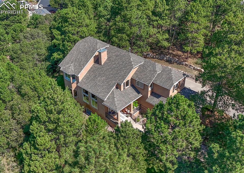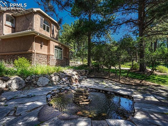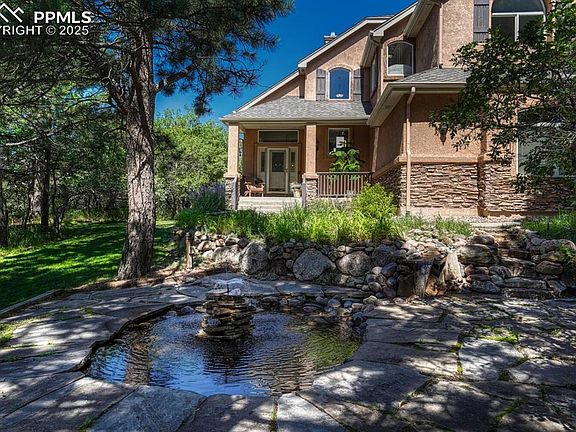 Warm and Welcoming Home with Serene Setting and Mountain Views. Tucked away in a quiet cul-de-sac, this beautiful home offers breathtaking, unobstructed views of Pikes Peak and a rare sense of peace and privacy. Surrounded by mature trees and frequent wildlife sightings, the unique lot provides a perfect balance of shade and natural light throughout the home. Enjoy a professionally landscaped yard featuring a tranquil rock stream and pond—ideal for relaxing or entertaining. Located just outside of Woodmoor with no HOAs, the property offers flexibility in a peaceful setting while still being  just minutes away from town conveniences. Inside, the oversized primary suite is a true retreat with vaulted ceilings, plant shelves, a cozy gas fireplace, and stunning mountain views. The remodeled ensuite bath boasts heated tile floors, a jetted soaking tub, custom frameless shower, and granite countertops. Upstairs, two additional bedrooms also feature vaulted ceilings and charming plant shelves, while a versatile loft space offers flexibility for a home gym, office, or playroom. The main level welcomes you with beautiful wood floors, a remodeled powder room, and a stunning kitchen designed for both beauty and function. The formal dining room with elegant trayed ceilings is perfect for intimate dinners or entertaining guests.     ADDITIONAL HIGHLIGHTS INCLUDE:   *Built-in bookshelves in the home office  *South-facing driveway for quick snow melt  *New roof and gutters (2024)  *Newer furnace and AC  *HOT TUB-ready cement pad with electrical already in place.     With tall ceilings throughout, thoughtful upgrades, and postcard views in nearly every direction, this home is a rare find.  Whether you're sipping morning coffee while watching deer wander through the trees, or soaking in mountain views at sunset, this property is more than a home—it’s a sanctuary. Don’t miss the rare opportunity to own a slice of Colorado paradise!